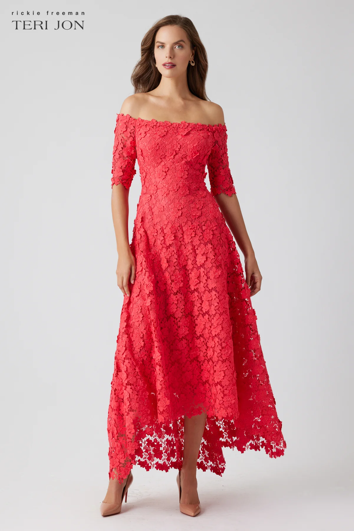 Dress to perfection in this off the shoulder elbow-sleeve lace tea-length dress! The neckline allows you to showcase your shoulders beautifully, while the cotton lace fabric offers a sense of breezy elegance and ensures you feel comfortable throughout the party. With its elbow-length sleeves and high-low hem, this dress strikes the perfect balance between casual and dressy, making it a versatile addition to your wardrobe. Showcased in various exquisite colors that are perfect for spring and summer events. Pair with gold accessories and nude heels to tie the entire look together.
