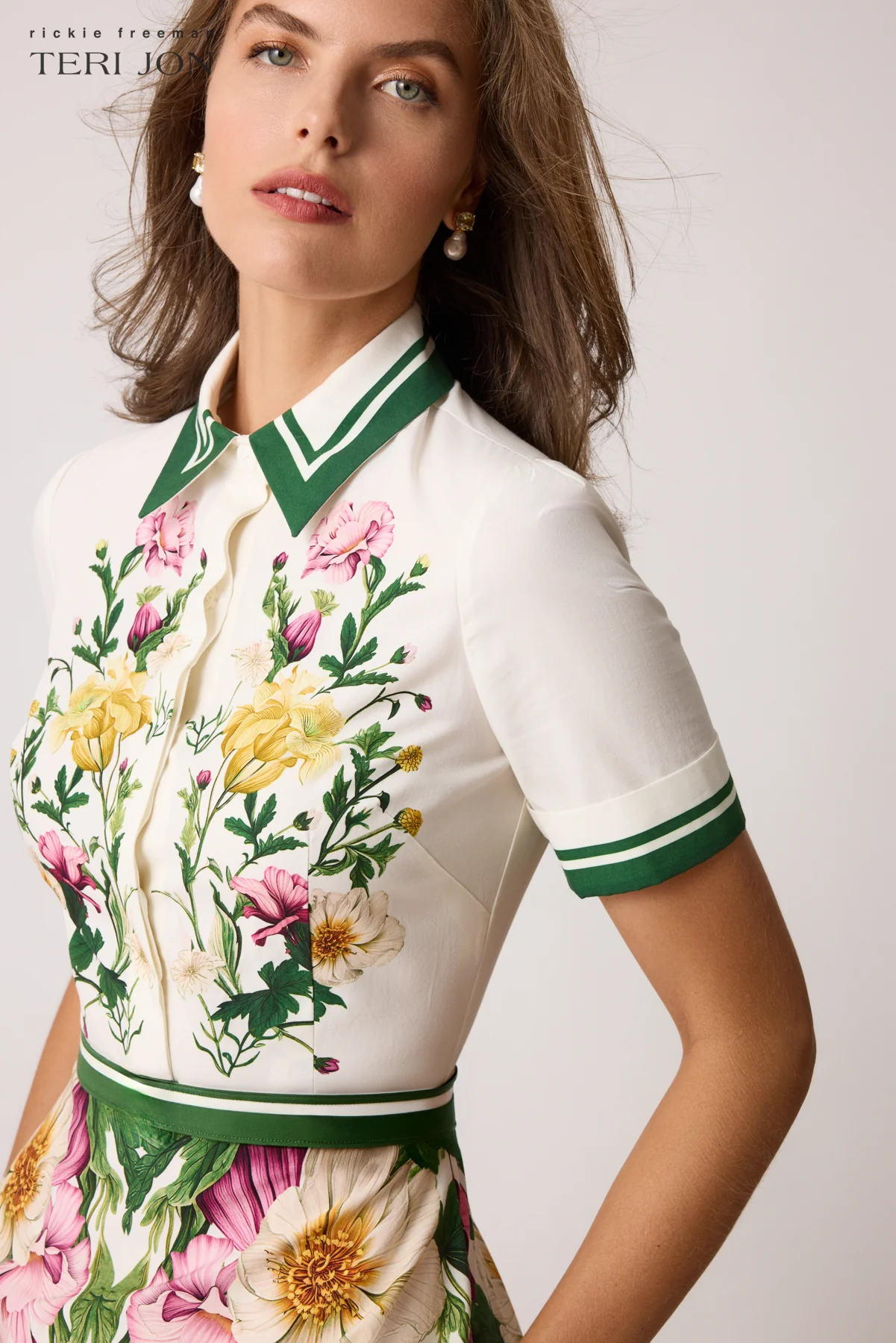 A fun and picturesque floral cotton shirtdress! Designed with a front button closure, short sleeves, and a removable belt, you will be sure to stand out at the party. The flounce hem adds a flirty touch to this colorful ensemble. Wear this piece to your next baby shower, cocktail party, or outdoor soiree.Ā