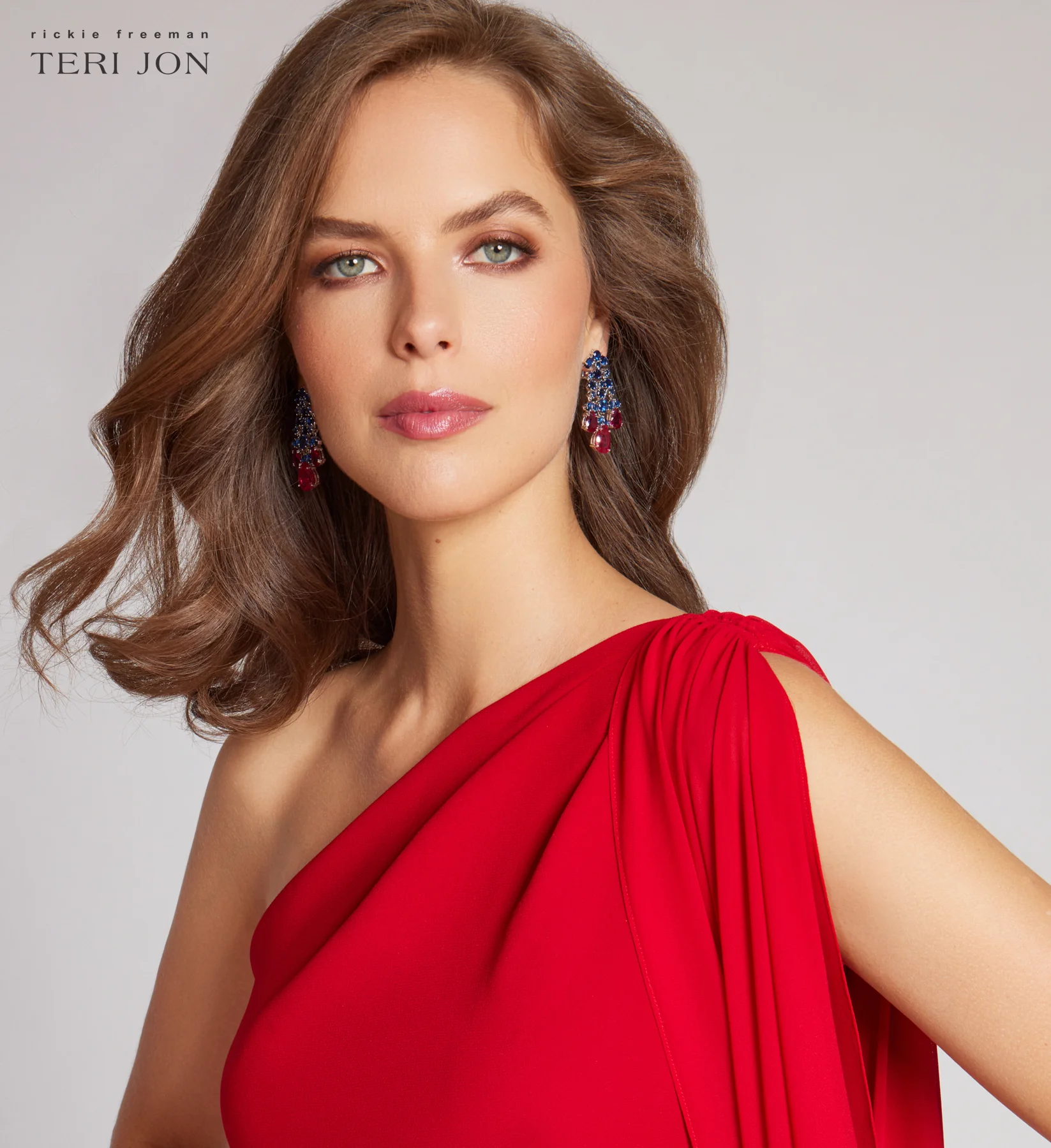 These chandelier earrings are strikingly bold and beautiful! Creating a stunning visual effect, attention is immediately drawn to the ears. The tiers of sapphire crystals along with the ruby pear-shaped crystals cascading elegantly at the bottom, offer the perfect amount of color and evoke movement as you walk. Pair these beauties with a monochromatic outfit for a pop of color.